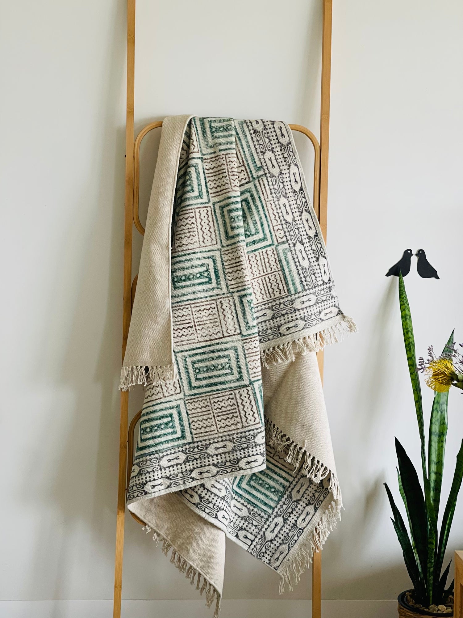 Caring for this exquisite piece is as easy as its charm. We recommend a cold gentle wash to preserve the integrity of the hand-printed design and the natural softness of the cotton jute fabric. To maintain the rug's vibrancy, wash it separately to prevent any potential color transfer. After washing, let the rug air dry outside, allowing it to soak up the fresh air and sunlight for a rejuvenated feel.
