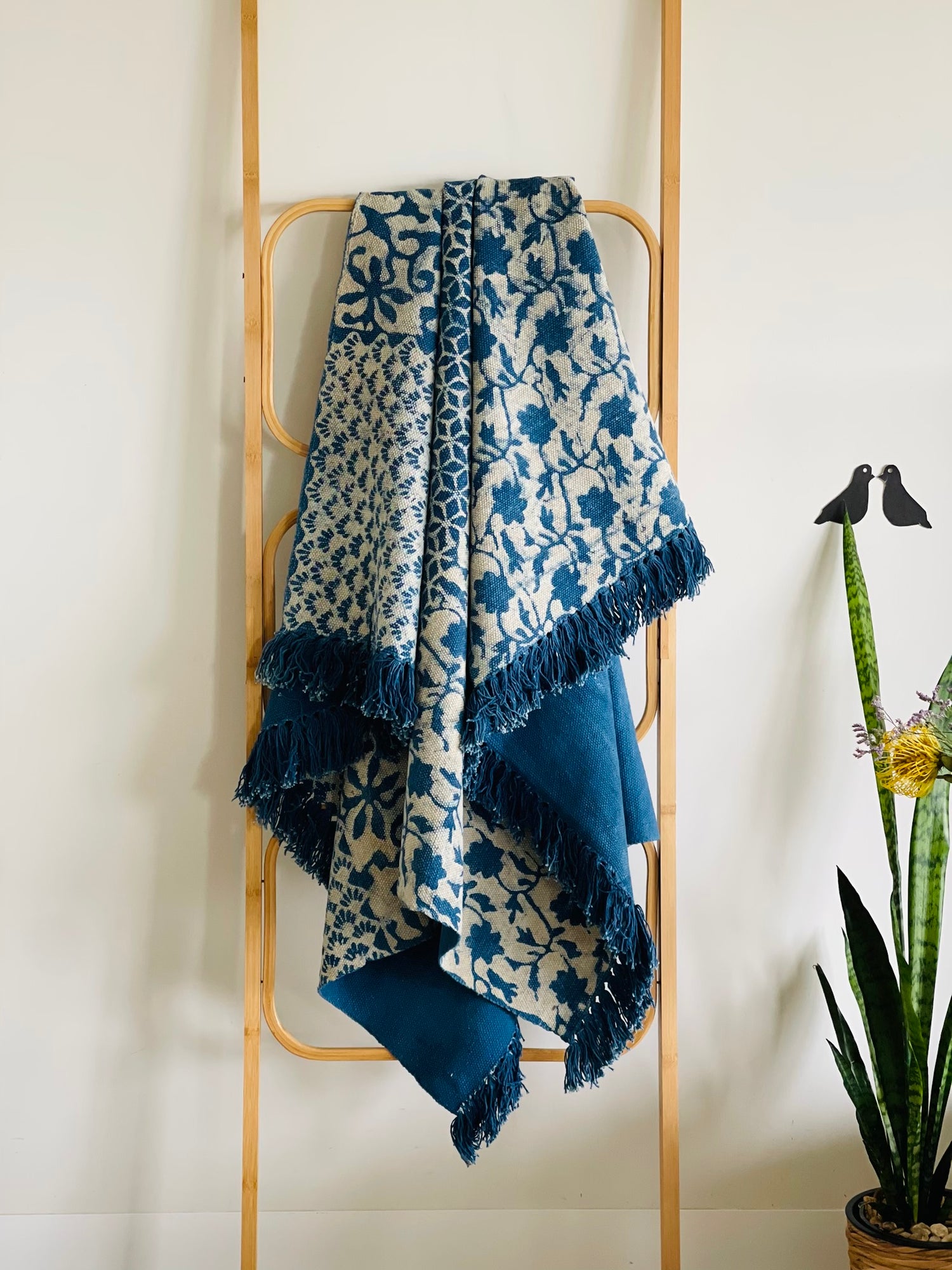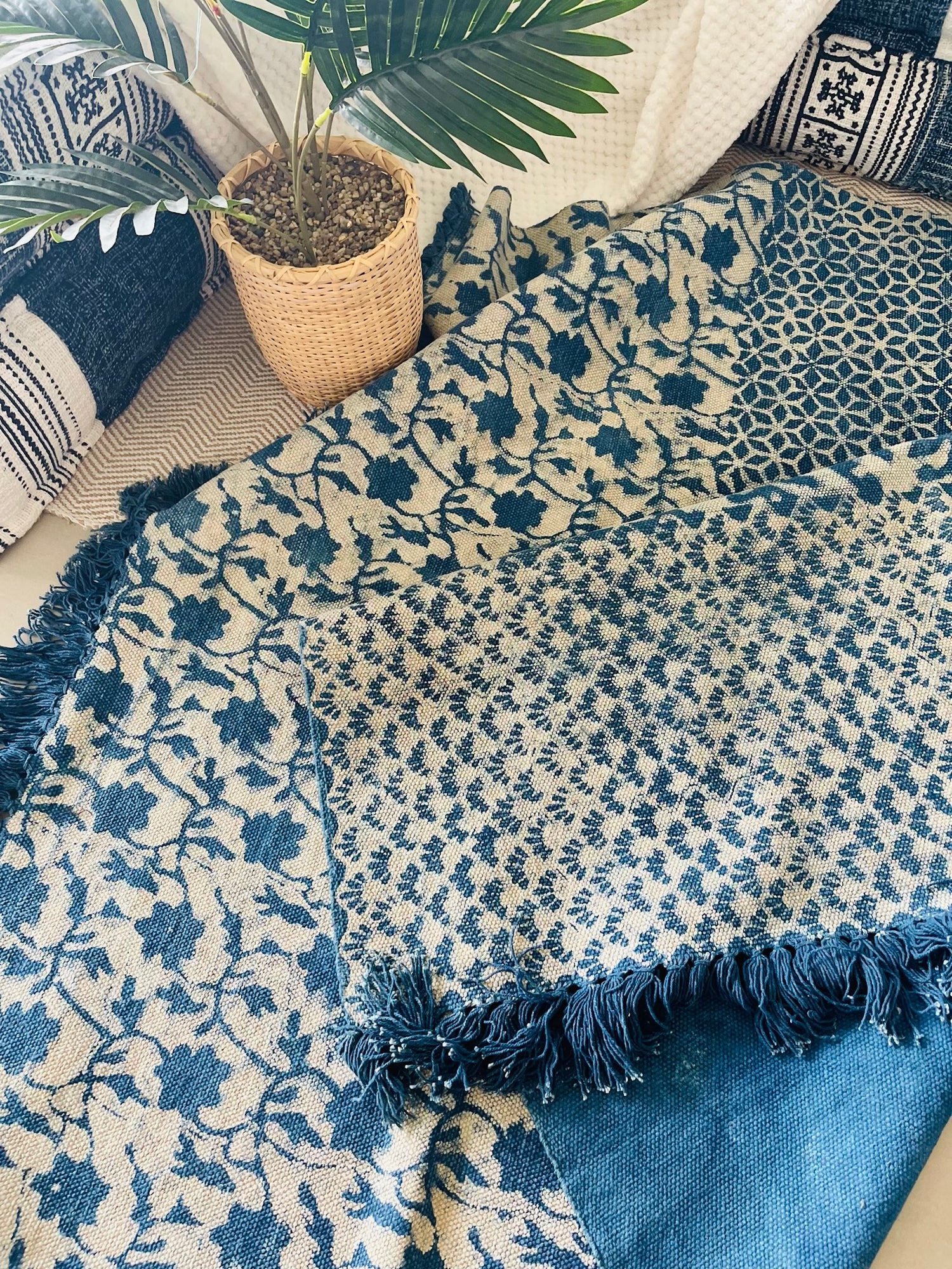 Immerse your space in the timeless allure of indigo with delicate patterns that tell a story of tradition and culture. Measuring 185cm x 125cm, this throw rug is thoughtfully designed to complement your living spaces, providing a touch of warmth and style.
